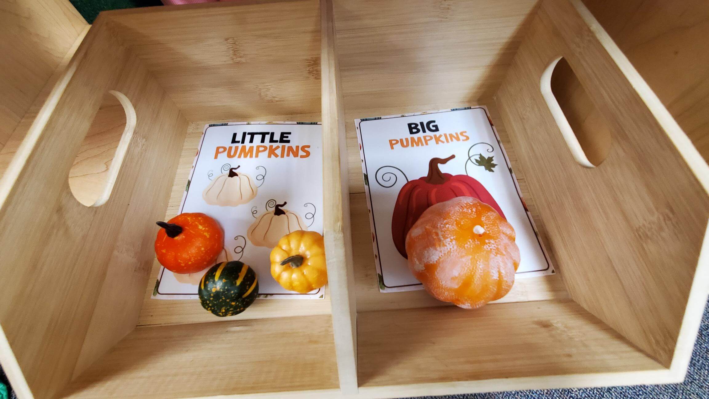 - Pumpkins come in all shapes, sizes, and colors, which gives us the perfect chance to practice our sorting skills! In this storytime, we asked kids to sort by size and organize pumpkins into two groups: little or big.