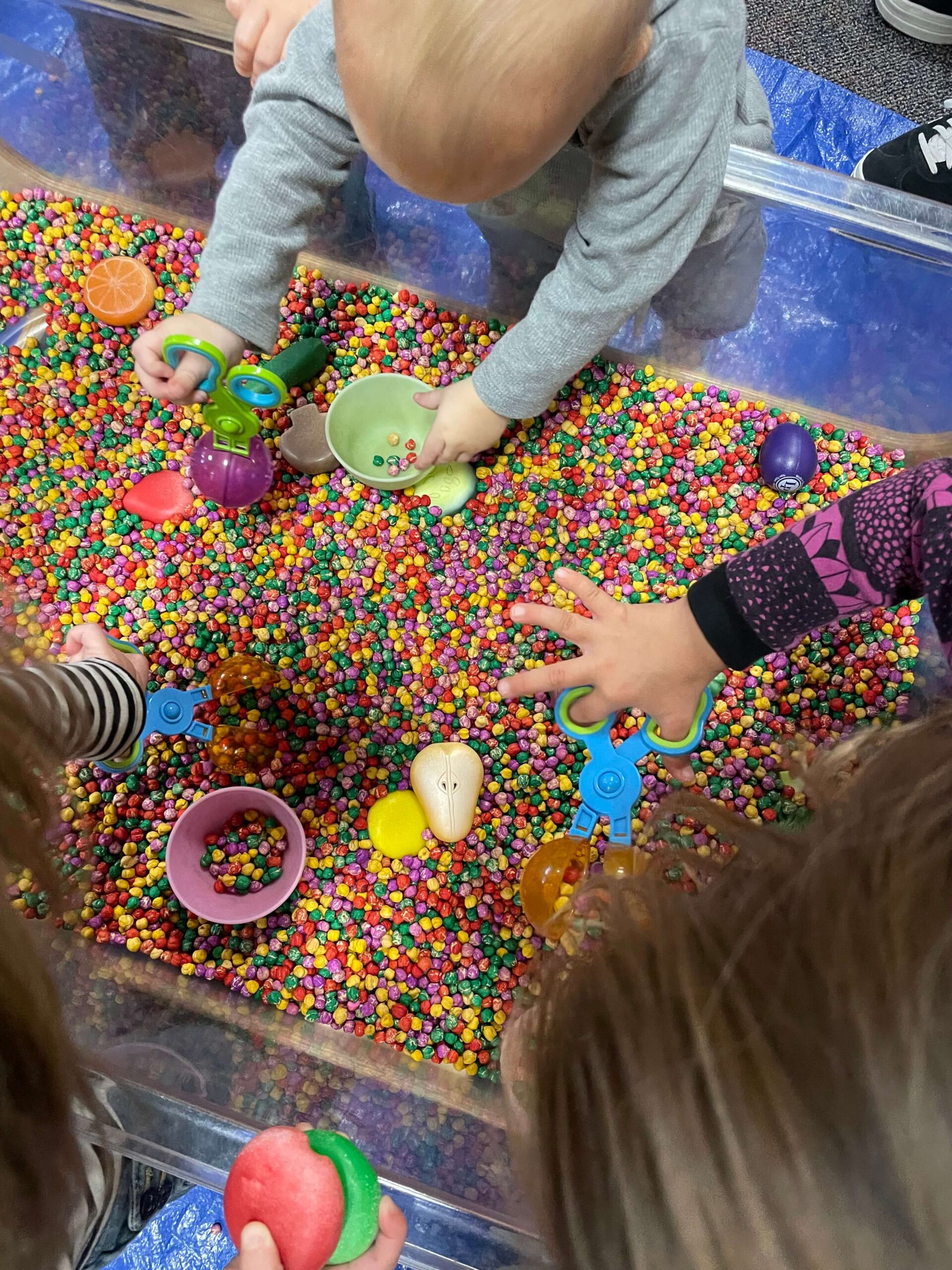 - This week we filled our sensory tub with colorful chickpeas and an assortment of fruit and vegetable sensory stones. This fun and colorful sensory experience also proved a great space for pretend play, as kids served each other and their grown-ups some delicious bowls of fruit and veggie soups!