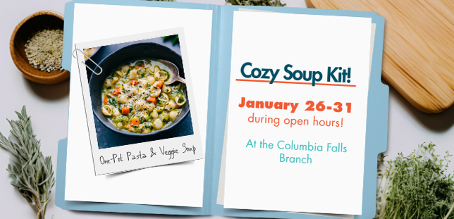 Bingo continues this winter with a cooking theme! Pick up a Cooking Bingo board at any library location this winter and challenge yourself try different recipes, techniques, and foods. Get a bingo and win a collectible sticker.