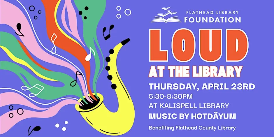 Loud at The Library is back! Come party for a great cause! All proceeds benefit Flathead County Library programming, materials and facility needs. You’ll dance to music by Hotdäyum, enjoy delicious snacks, beer, wine and silent auction. Bring your family and friends, and come make some noise for our fabulous libraries!